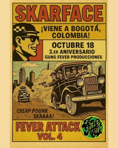 Finalmente se hizo el anuncio esperado durante más de dos décadas por los aficionados del ska en Colombia, el próximo 18 de octubre, Skarface, estará en vivo y en directo en Bogotá, en el marco del festival Fever Attack Vol 4.